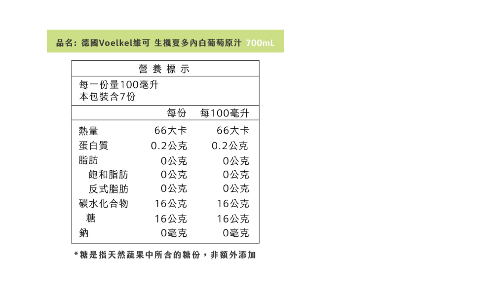 品名:Voelkel夏多內白葡萄原汁