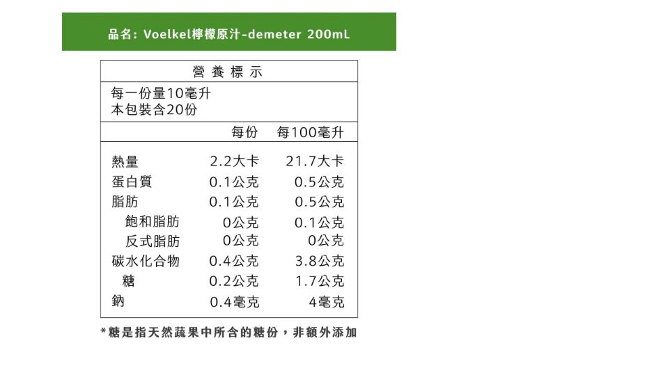 品名:Voelkel 檸檬原汁
