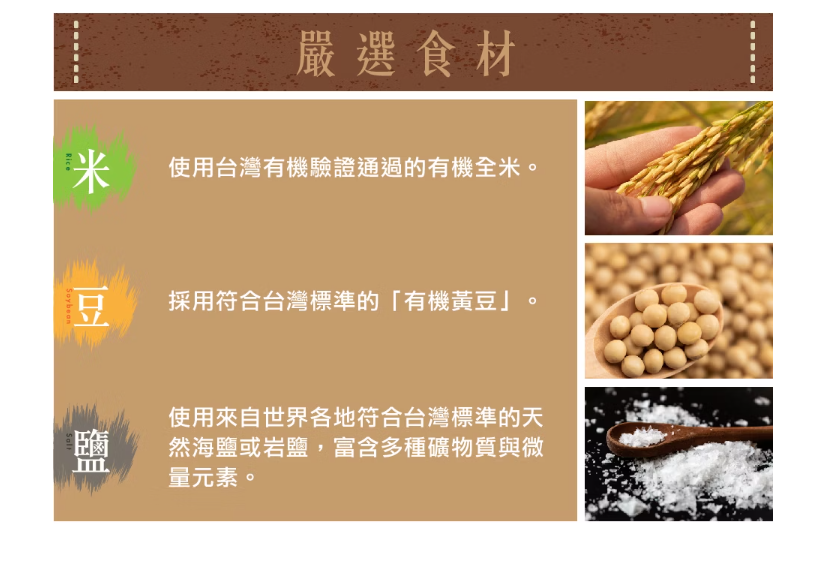皆使用非基因改造黃豆。不添加防腐劑,請冷藏保存。