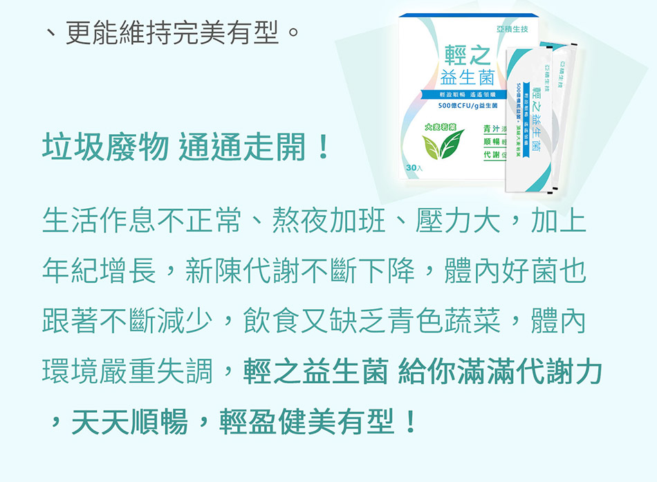 輕之益生菌為天然青汁益生菌和天然青汁乳酸菌,可以幫助有效輕盈、有型、順暢、飄然。