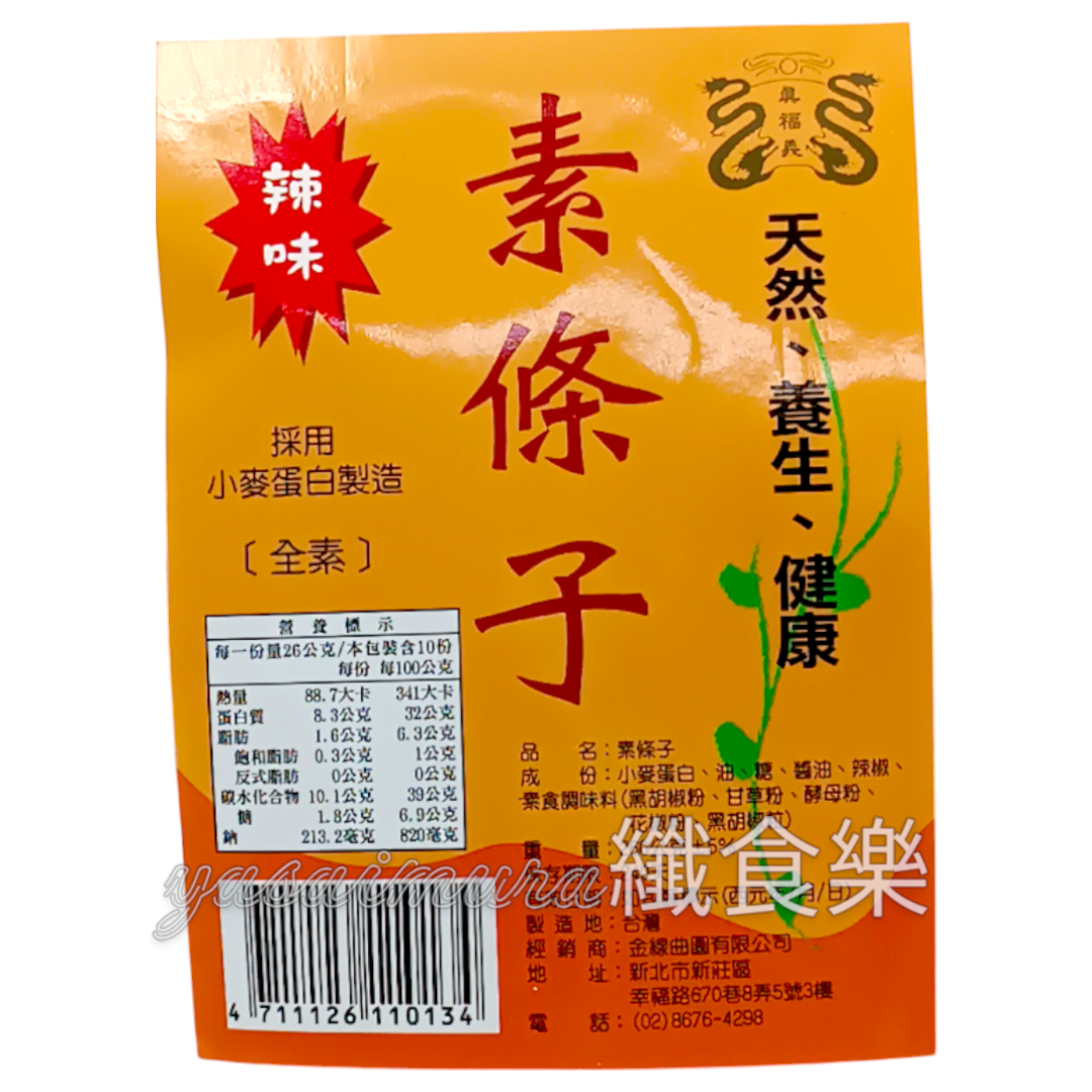 辣味成分:小麥蛋白、油、糖、醬油、辣椒、素食調味料(黑胡椒粉、甘草粉、酵母粉、花椒粉、黑胡椒粒)
