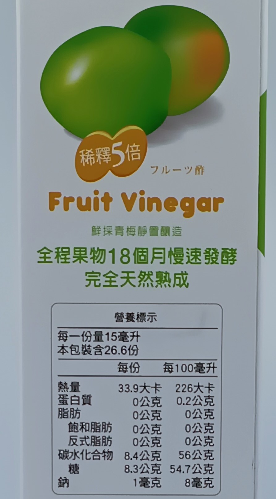 成份:水、純釀造梅子醋、冰糖、異麥芽寡糖、蜂蜜