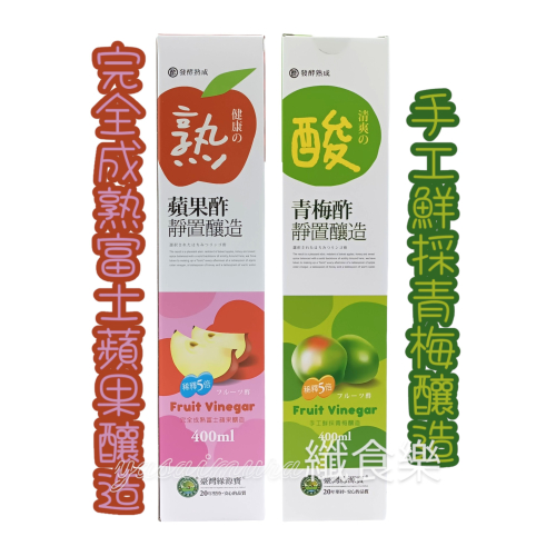 我們採用果肉甜美富士蘋果;手工採收的台灣青梅,靜置釀造~
