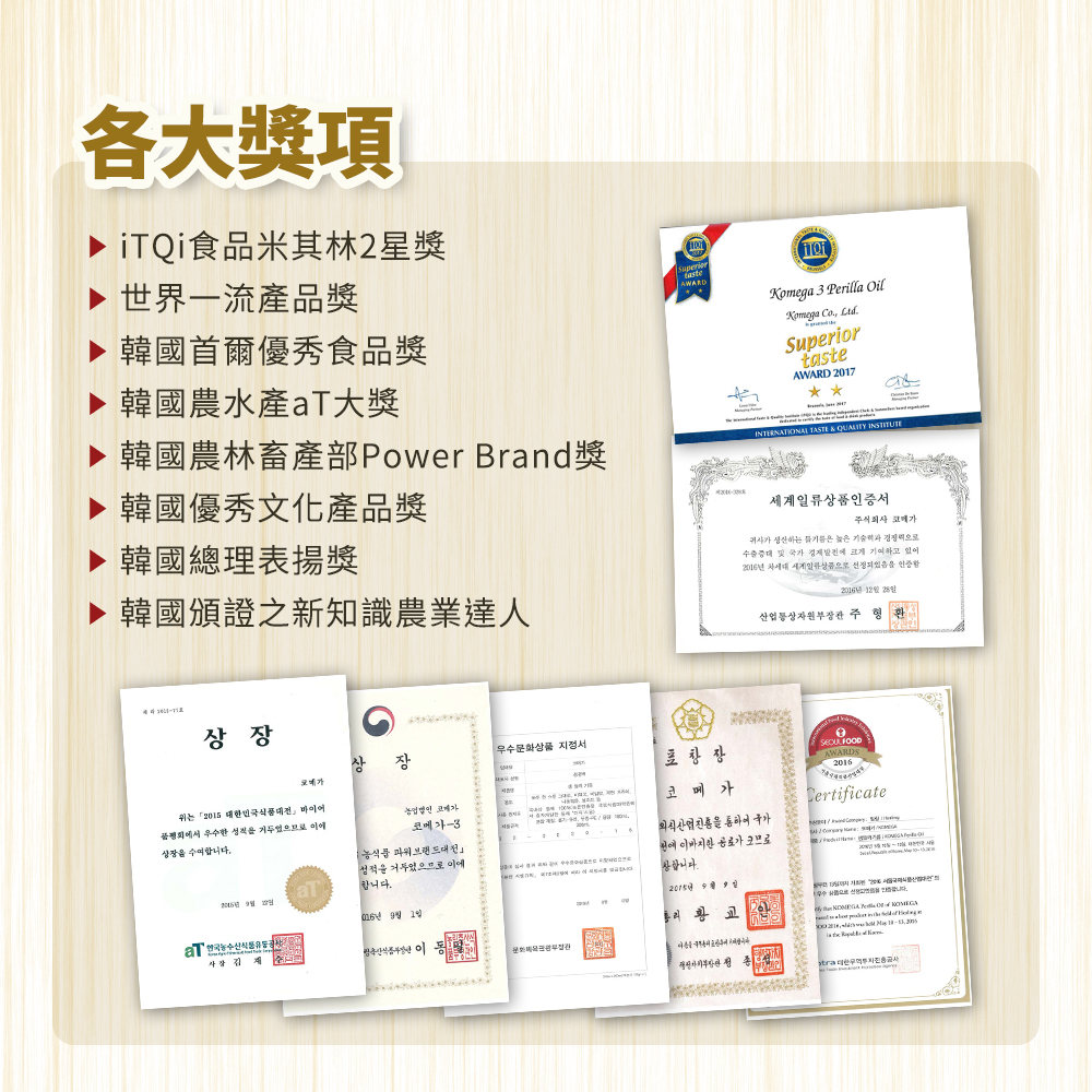 韓國頒定農業達人紫蘇油第一號,韓國獲獎無數,有口皆碑,臺日韓熱銷品牌