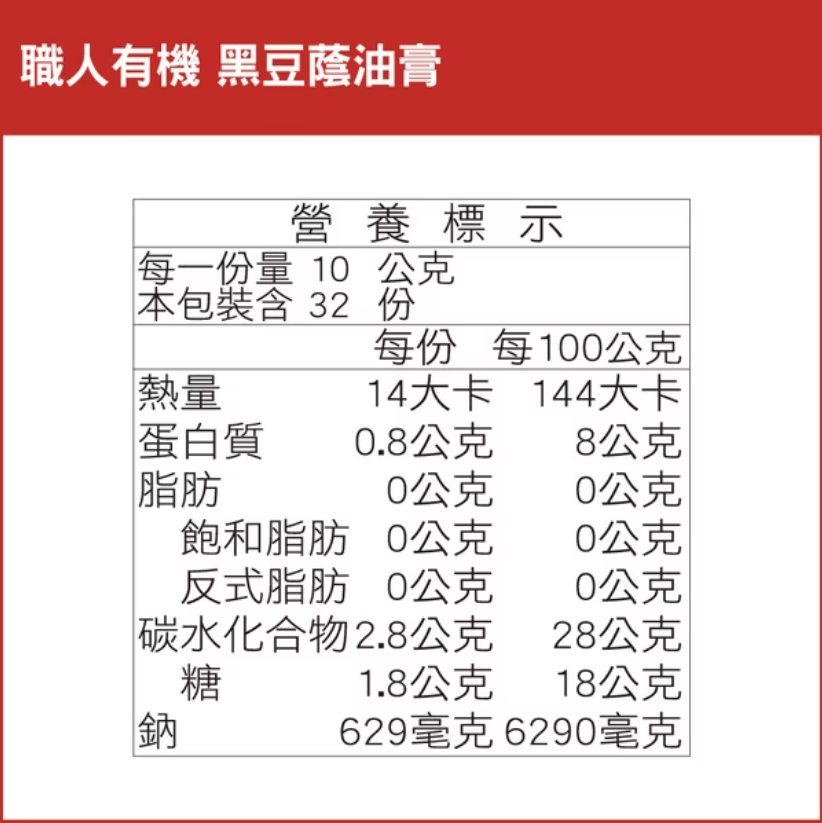 成分:水、有機黑豆(中國)、有機砂糖(巴西)、鹽、有機糯白米(台灣)、甘草