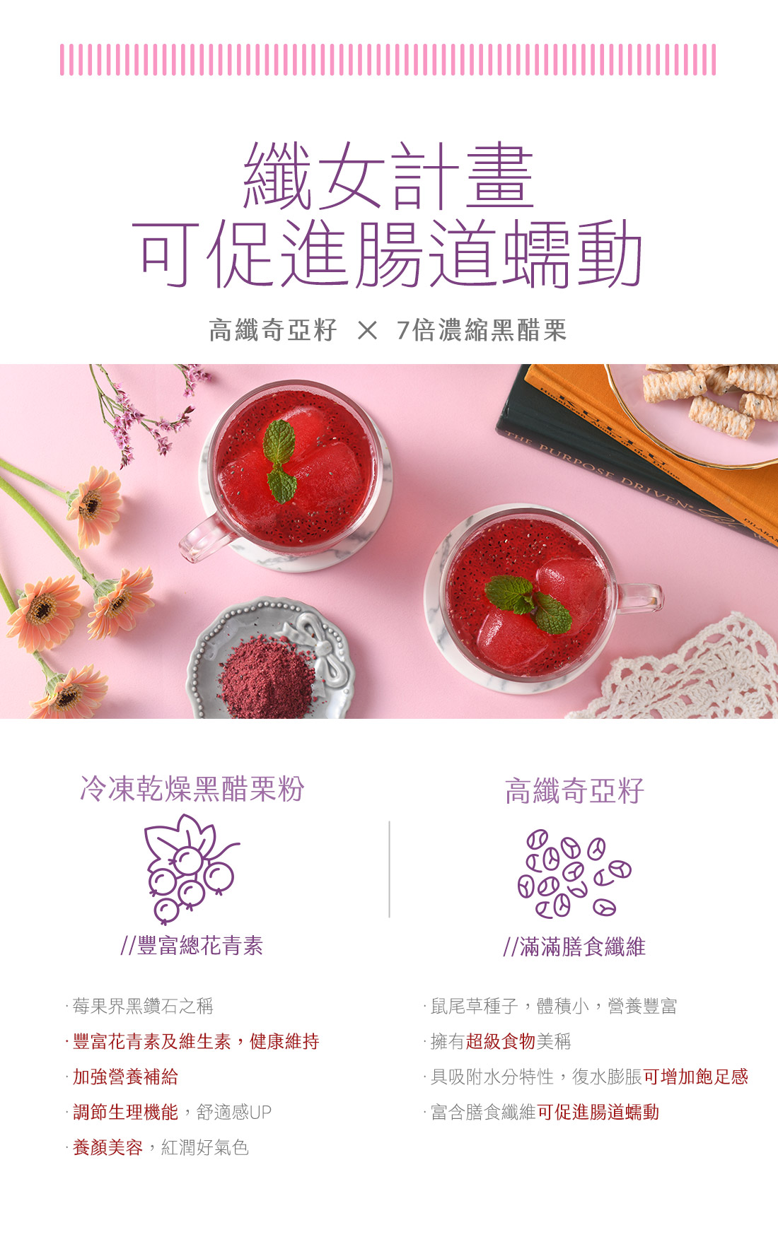 原料:冷凍乾燥黑醋栗粉、奇亞籽