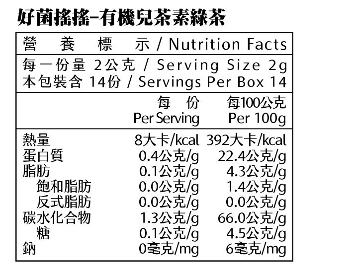 品名:好菌搖搖-有機兒茶素綠茶