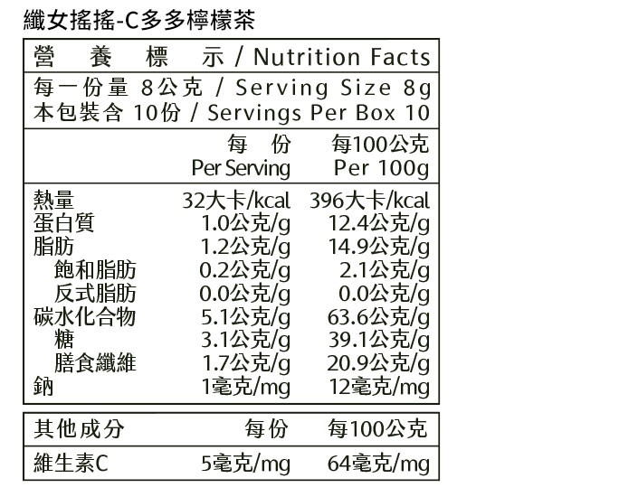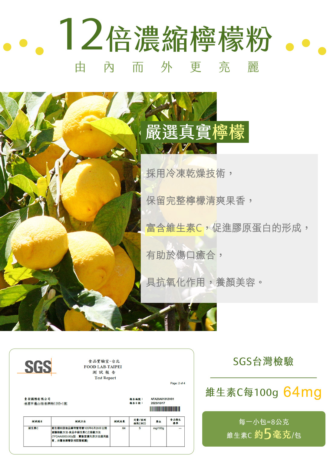 ◆ 12倍濃縮檸檬粉,富含維生素C,具抗氧化作用