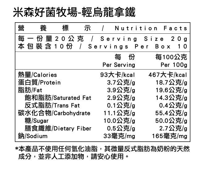 品名:好菌牧場-輕烏龍拿鐵