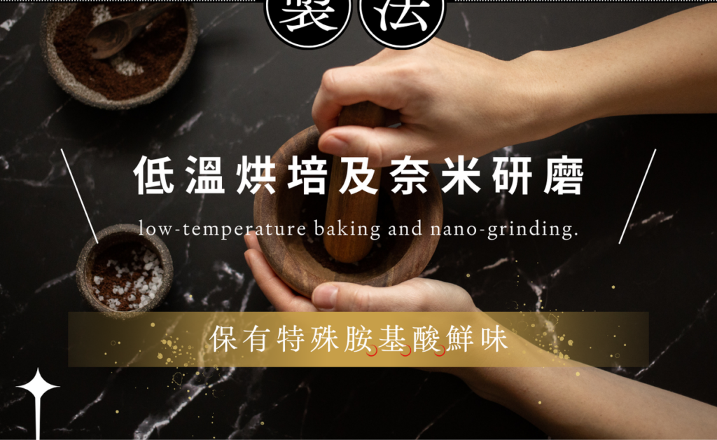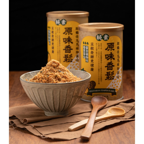 獨家篩選出台灣天貝菌種與十餘種豆榖類共同發酵而成的什豆天貝,經低溫烘焙及奈米研磨,保有特殊胺基酸鮮味融入素香鬆內,香氣撲鼻,葷素皆宜。