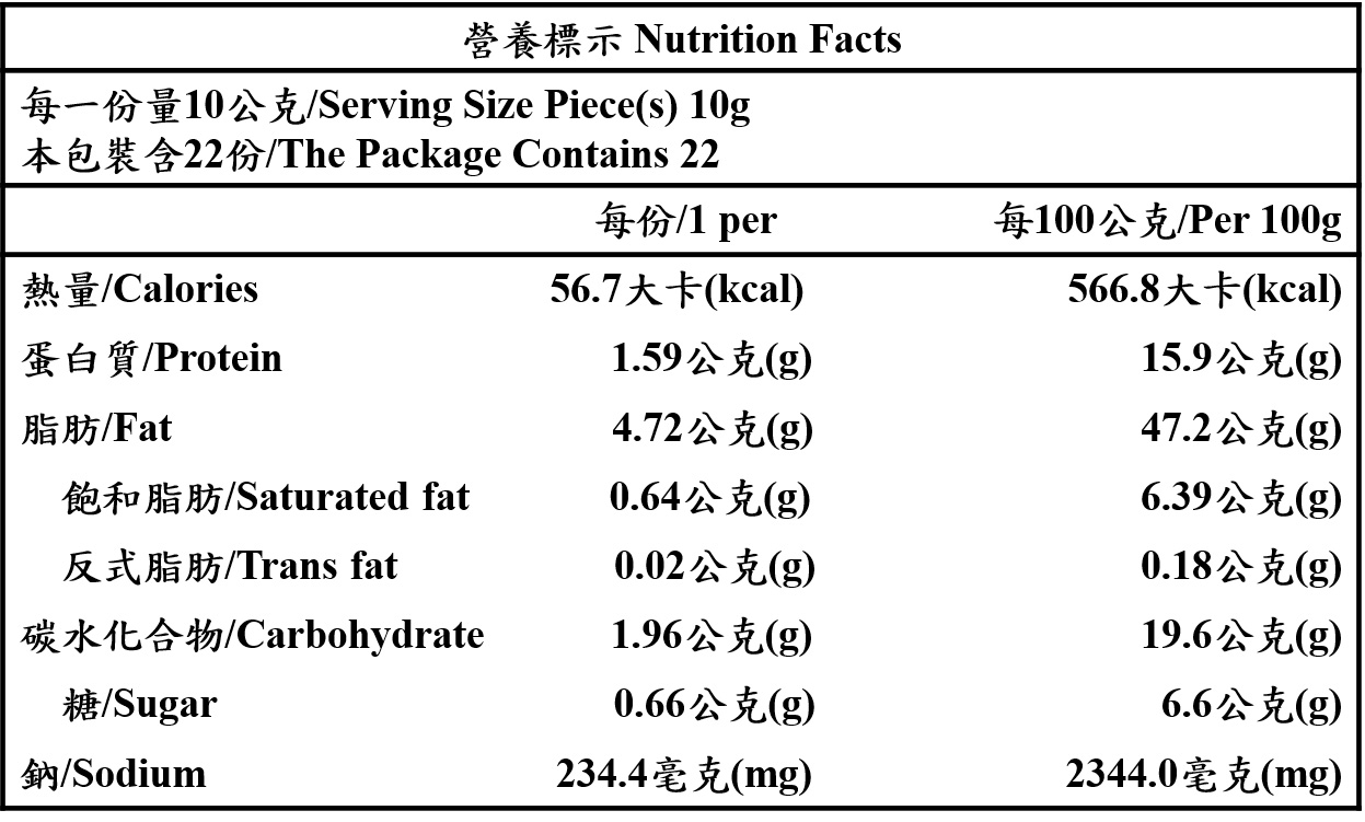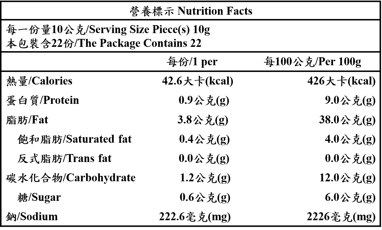 過 敏 原:本產品含有大豆、芝麻及小麥製品。