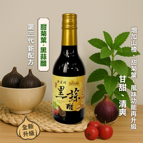 主要原料:陳年糙米醋(純水、糙米)、黑蒜、山楂、甜菊葉、無花果