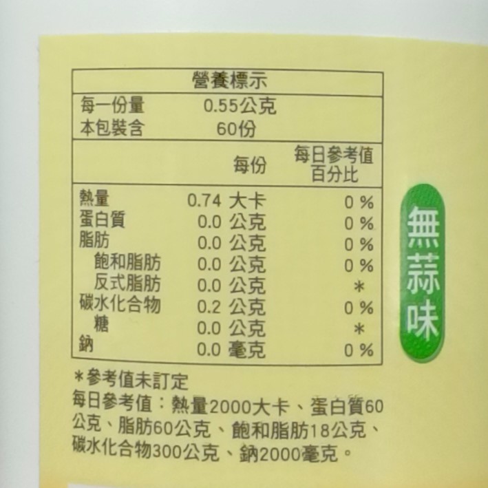 成分:大蒜萃取物、麥芽糊精、硬脂酸鎂