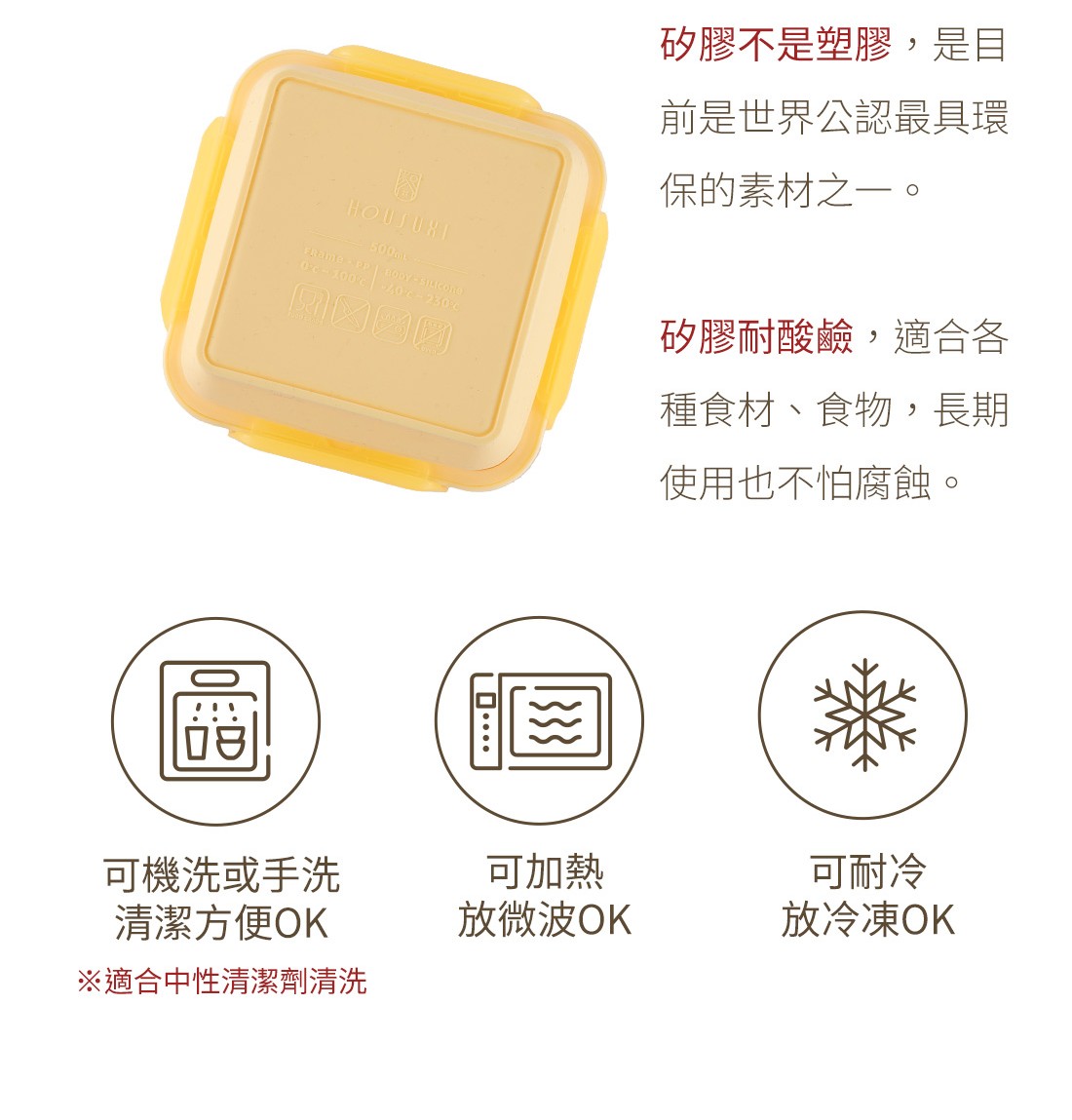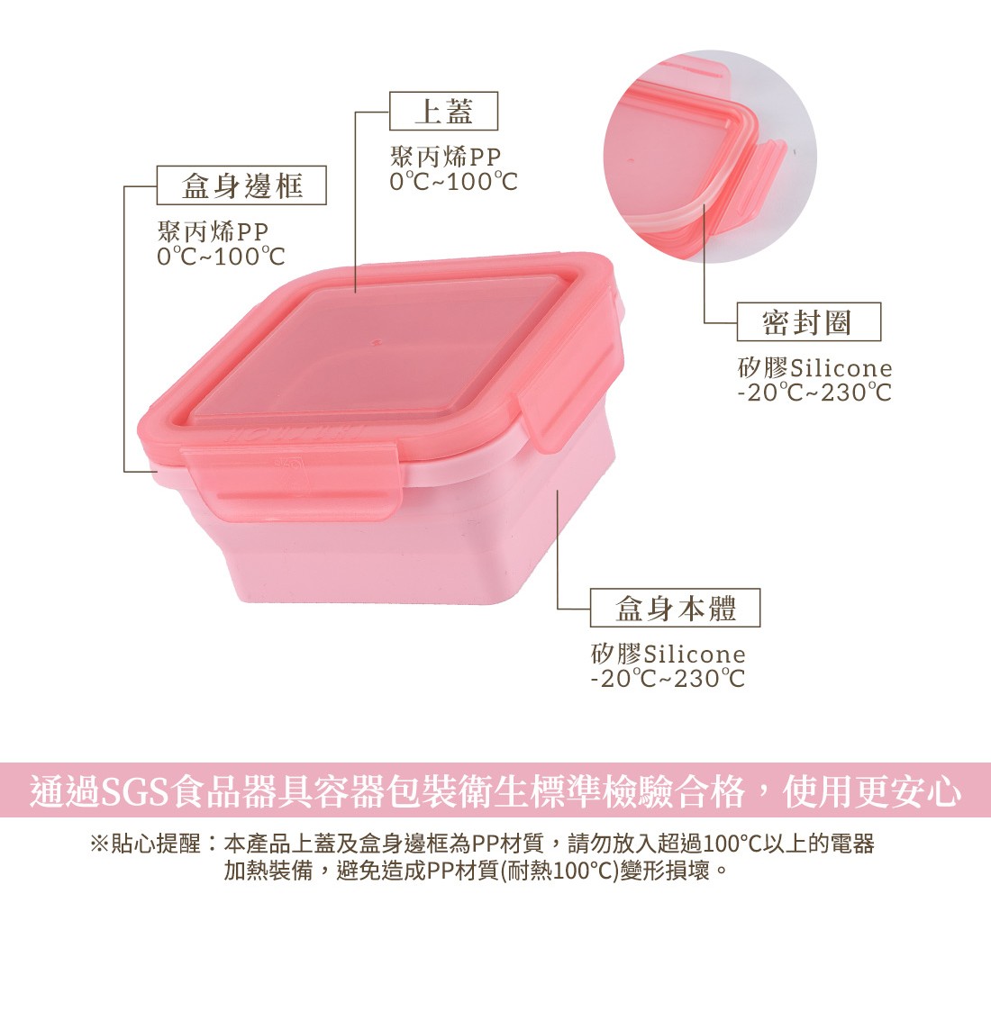 盒身本體、密封圈材質|耐熱溫度:矽膠 Silicone|-40°C~ 230°C