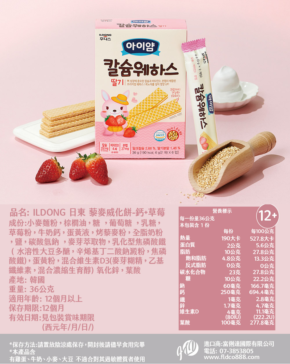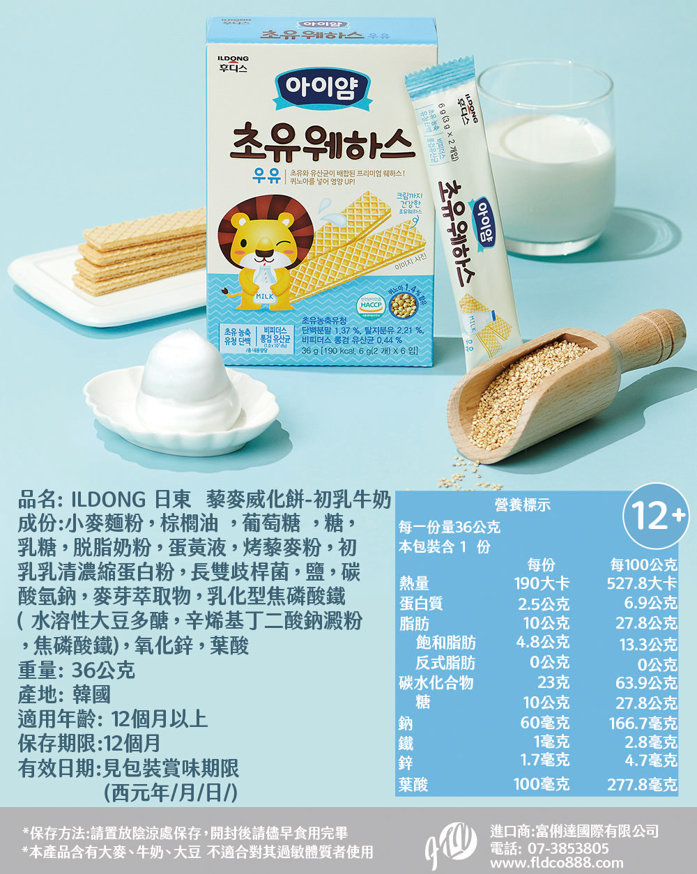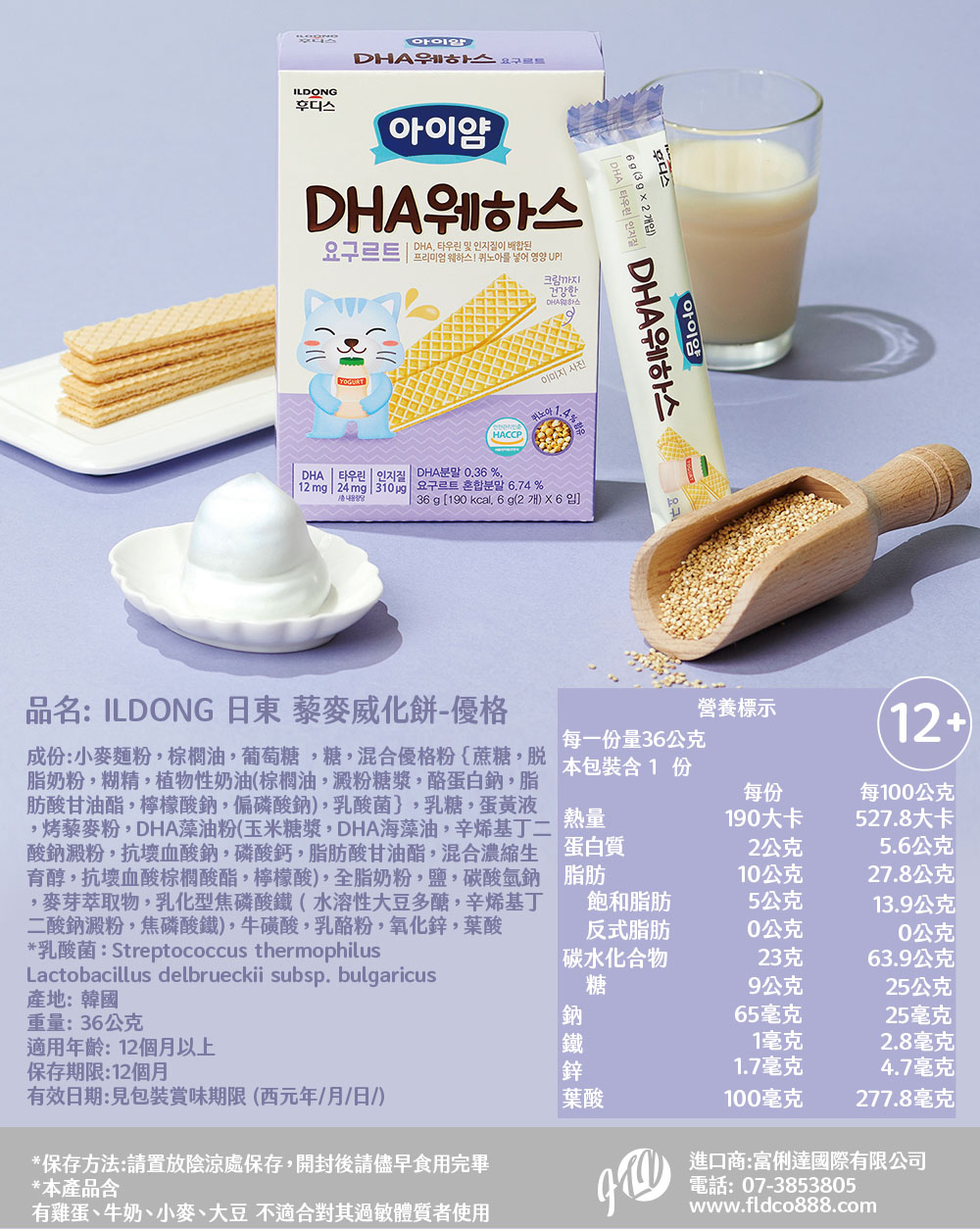 韓國 ILDONG FOODIS 日東 藜麥威化餅 牛奶/優格/草莓/香蕉(36g)