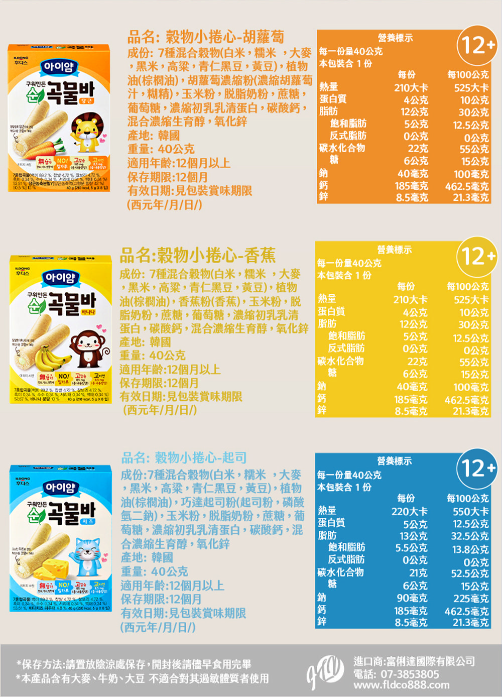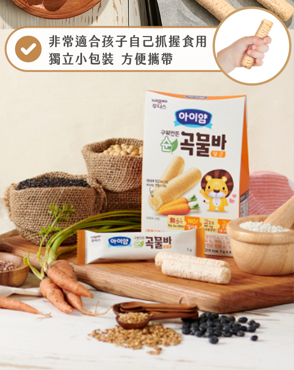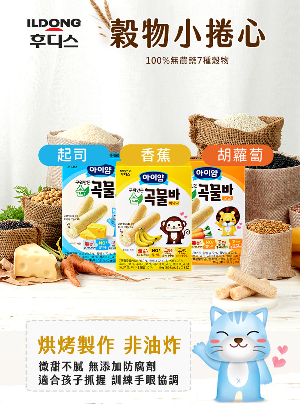 韓國 ILDONG FOODIS 日東 穀物小捲心 起司/香蕉/胡蘿蔔 (40g)