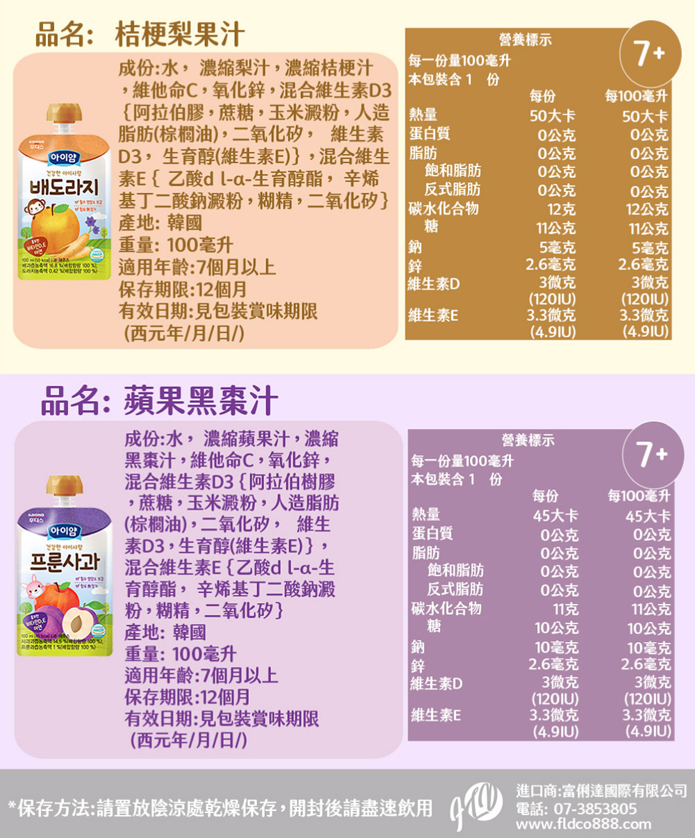 韓國 ILDONG FOODIS 日東 寶寶果汁 桔梗梨/蘋果黑棗 (100ml)