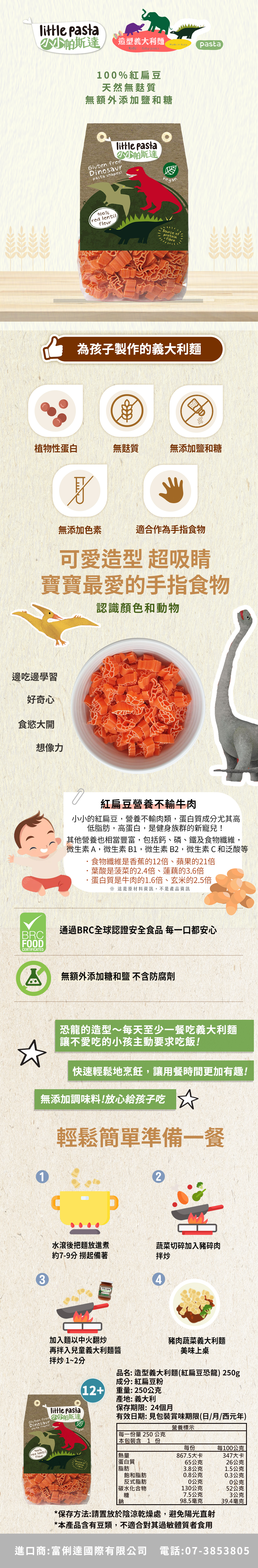 英國 小小帕斯達 造型義大利麵 紅扁豆恐龍 (250g)