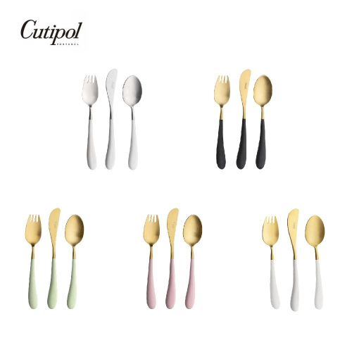 來自葡萄牙手工餐具Cutipol,推出受好評的兒童版本Alice系列,使用18-10 316不銹鋼,握柄也使用可愛且典雅的顏色,並製作成小孩好握取的舒適圓弧外型,刀叉更設計成安全且好拾取食物的弧度,右手拿刀,左手握叉,讓小孩自己學著動手吃飯變得更容易!