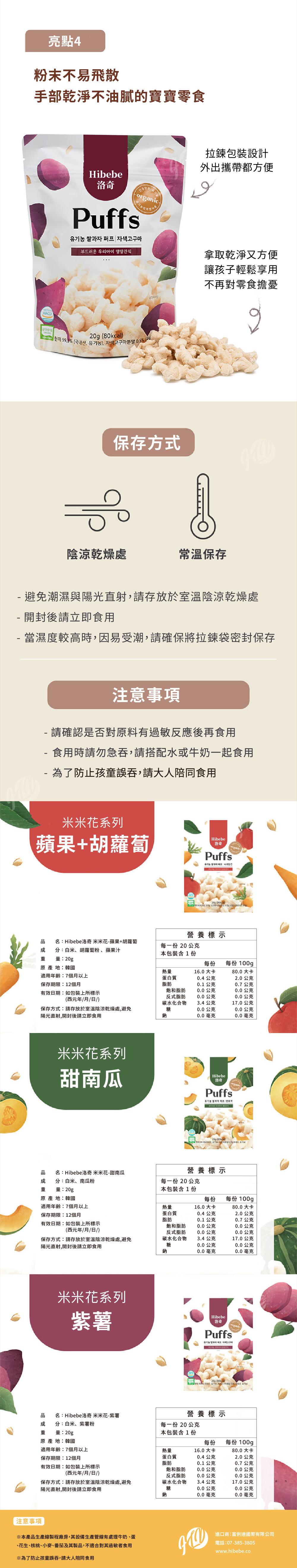 【Hibebe洛奇】米米花-韓國甜南瓜/紫薯/韓國蘋果+胡蘿蔔 20g (7M+適用)