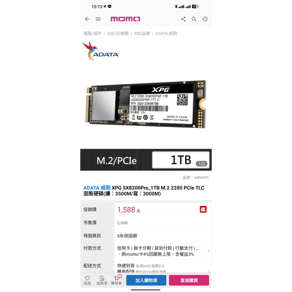 威剛 8200 ssd 1tb 保固五年全新未拆封
