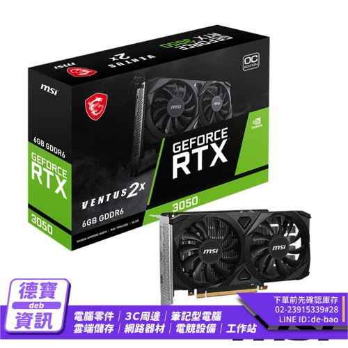 MSI 微星 GeForce RTX 3050 VENTUS 2X E 6G OC 顯示卡/012626