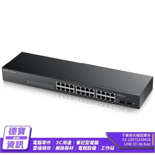 Zyxel合勤24埠Gigabit+2埠光纖智慧型管理交換器
