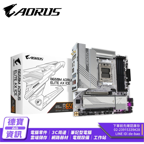 技嘉GIGABYTE B650M AORUS ELITE AX ICE AMD主機板/050325