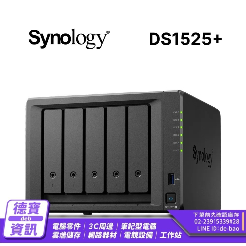 DS1525+ 搭載 AMD Ryzen V1500B 四核心處理器,配備雙 2.5GbE 網路埠,可選配 10GbE 升級,提供高達 696 MB/s 讀取及 862 MB/s 寫入速度,適合高負載應用如檔案傳輸、虛擬化及多用戶環境。