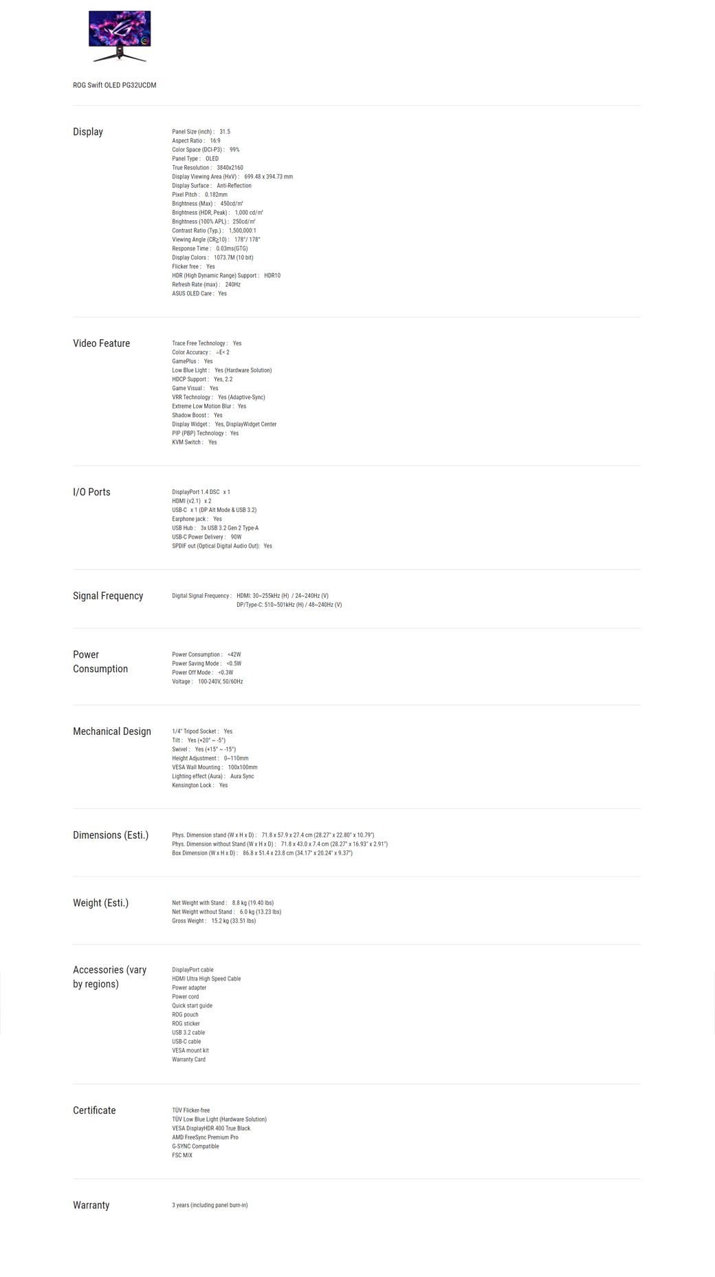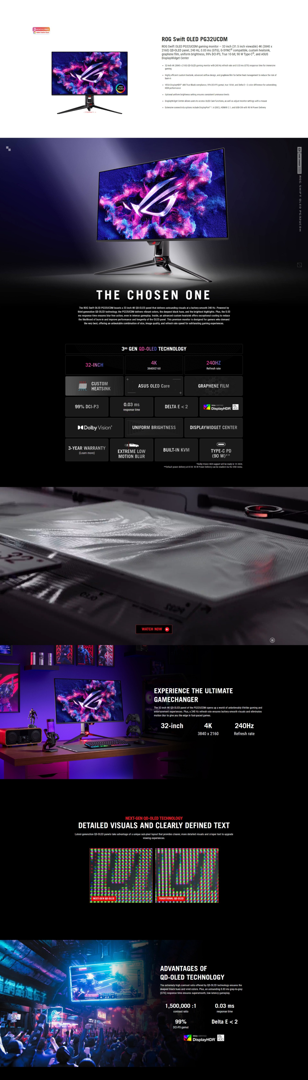 • 32型 3840x2160 4K解析 / OLED面板 / G-SYNC相容