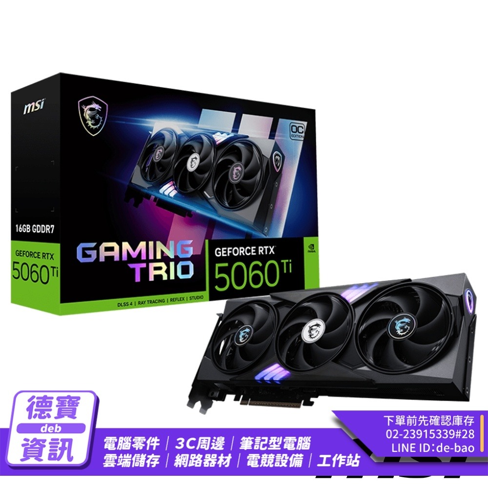 MSI微星 GeForce RTX 5060 Ti 16G GAMING TRIO OC 顯示卡/060225