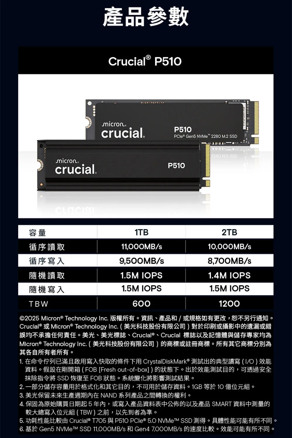 Micron 美光P510 1TB 2TB SSD固態硬碟(Gen5 2280 M.2 )/020726