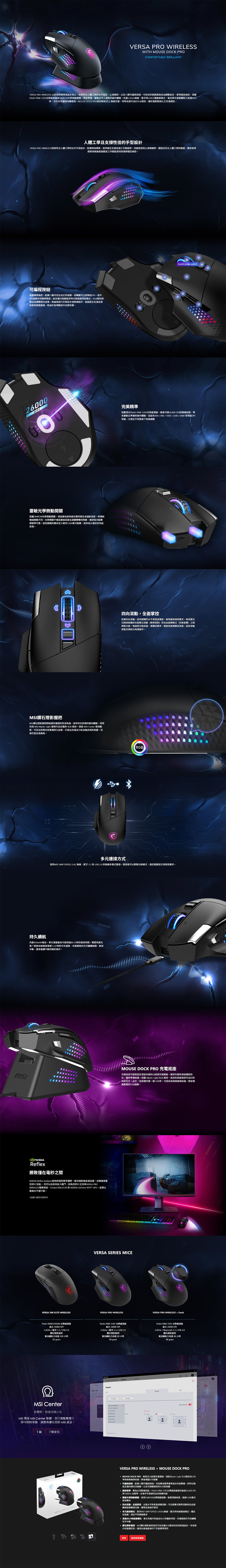 MSI微星 VERSA PRO W + MOUSE DOCK PRO 無線 藍芽 有線 電競滑鼠/080425