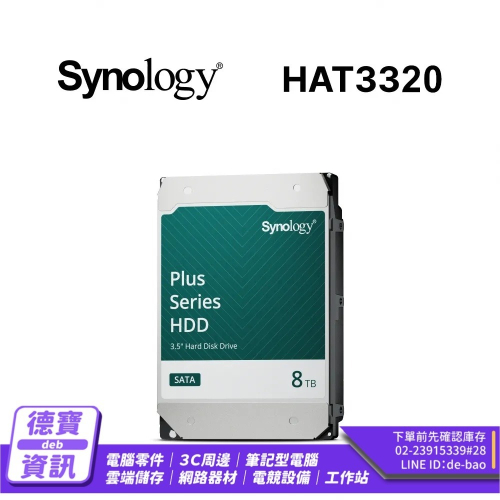 Synology 群暉HAT3320 PLUS系列 8TB/7200轉/512MB/3.5吋3Y NAS硬碟/08172