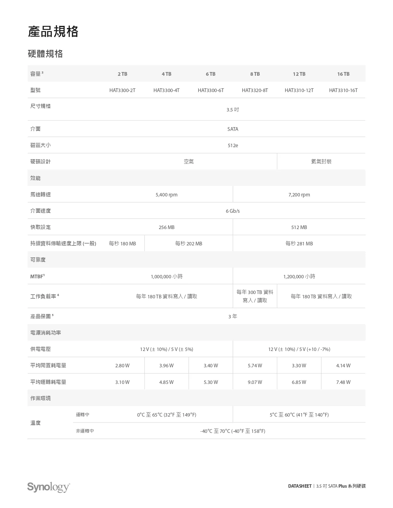 • 7200RPM / 512MB / 8TB / 專用NAS硬碟