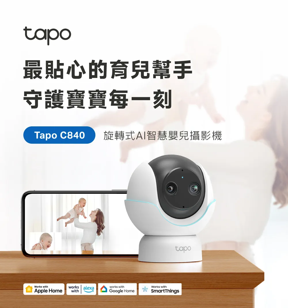 (寶寶照護)TP-Link Tapo C840 2K+1080P雙畫面 Wi-Fi監視器 旋轉式 智慧嬰兒攝影機哭聲偵測