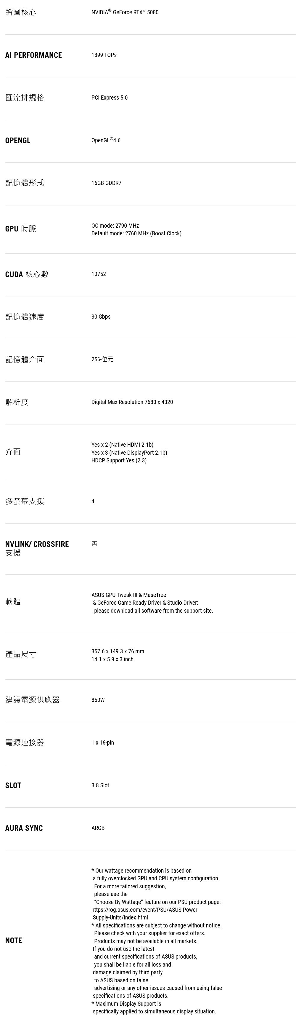 ASUS 華碩 ROG-ASTRAL-RTX5080-O16G-WHITE 顯示卡/090425