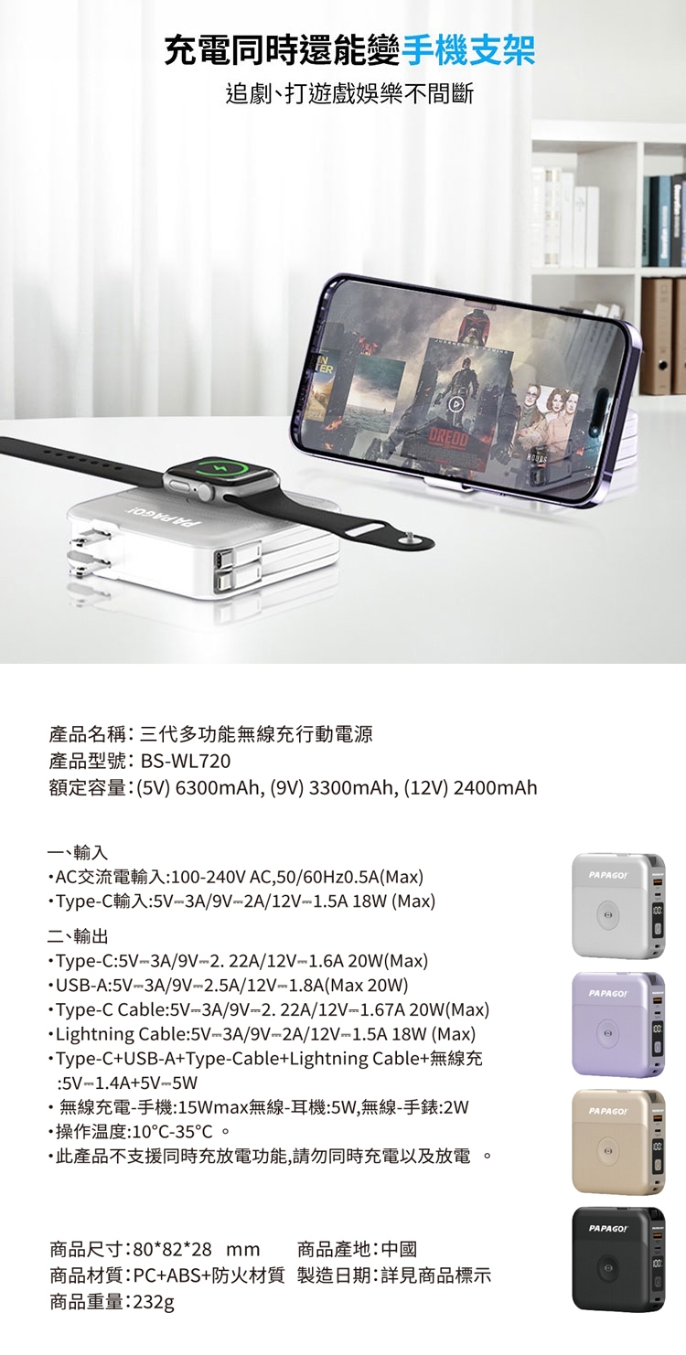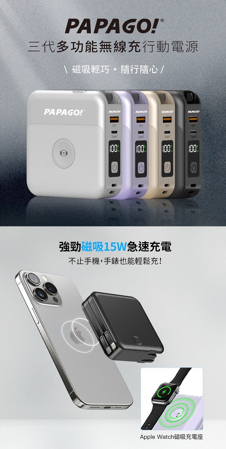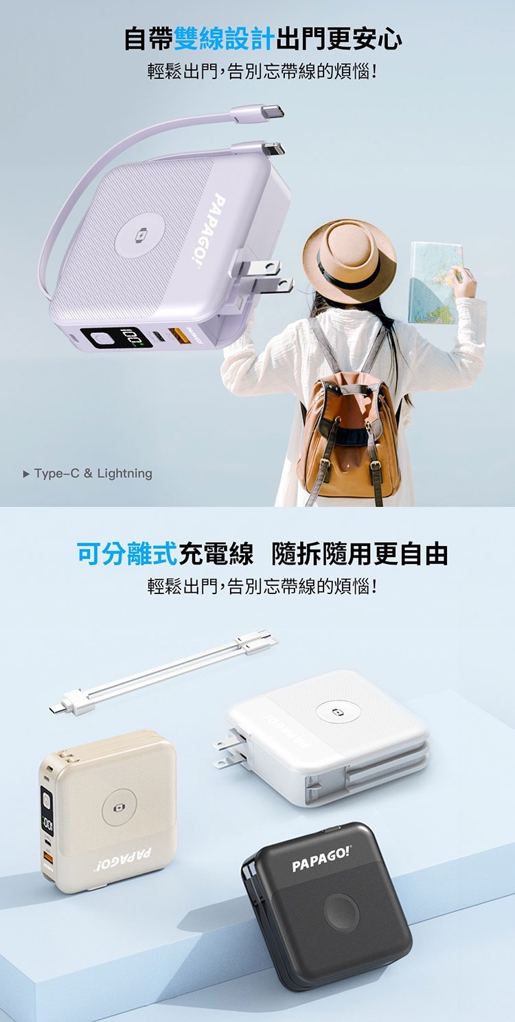 PAPAGO!第三代多功能10000mAh可分離式充電線行動電源BS-WL720