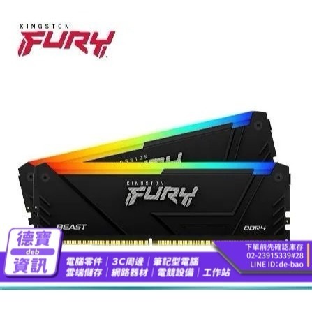 金士頓 FURY Beast 獸獵者 DDR4 3600 16GB(8GBx2) RGB桌上型超頻記憶