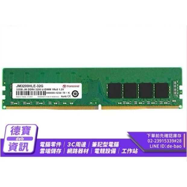 Transcend 創見 32GB JetRam DDR4 3200 桌上型記憶體 (JM3200HLE-32G)
