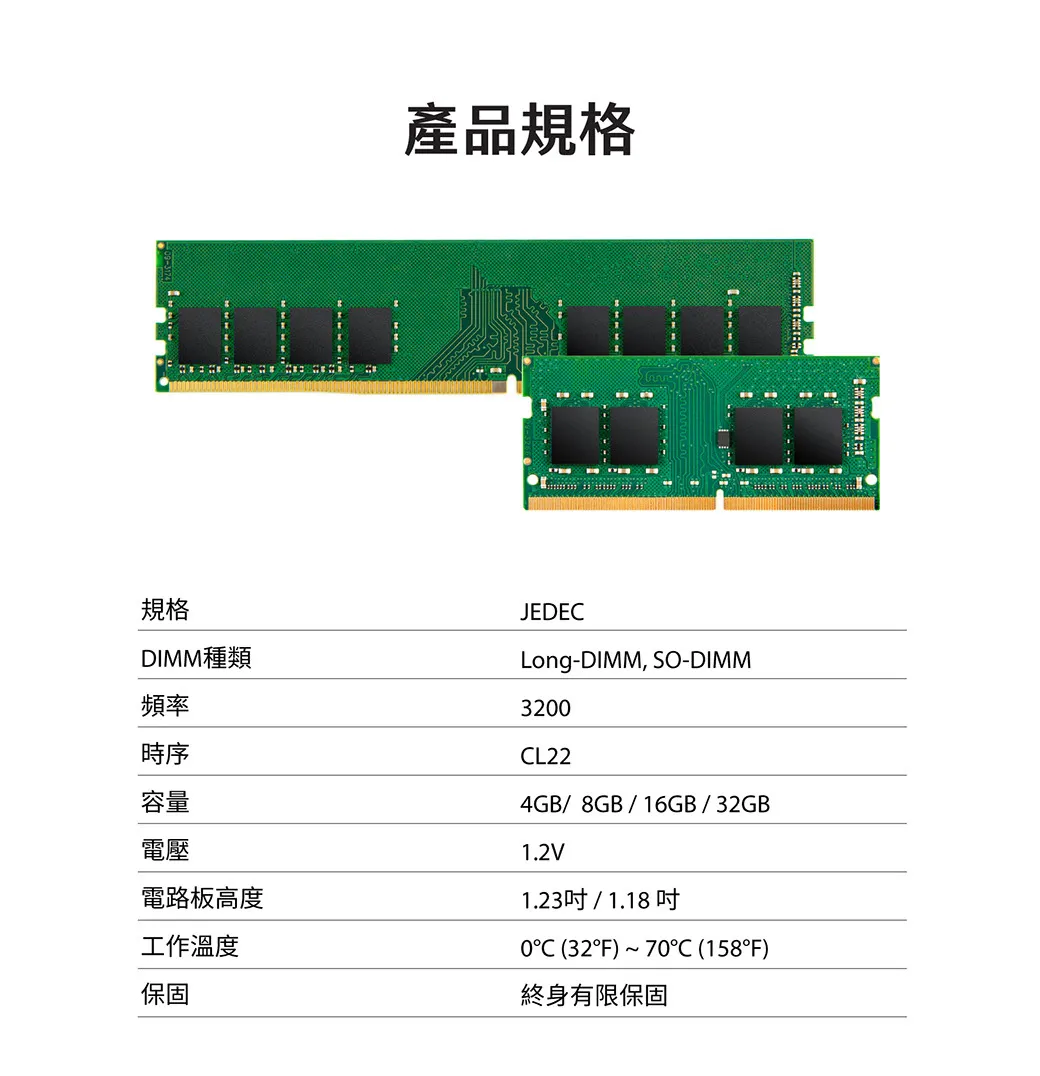 • 規格 : DDR4-3200MHz