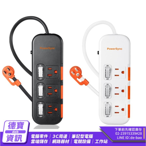🔹 Powersync 群加 3開3插 滑蓋防塵防雷擊延長線 1.8M 黑 (TS3DC318)
