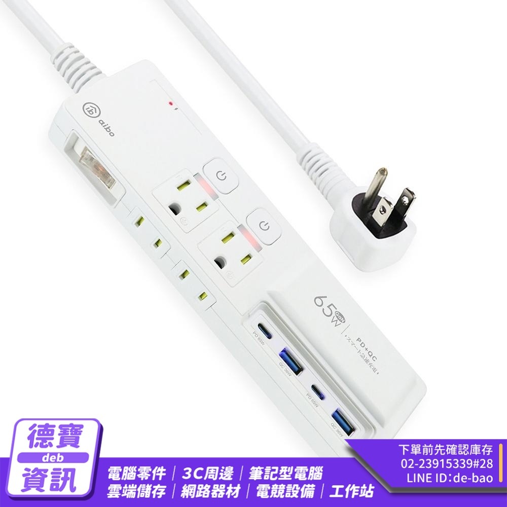 .商品名稱:aibo GaN氮化鎵 3開4插 高溫斷電智慧 PD65W超閃充USB延長線