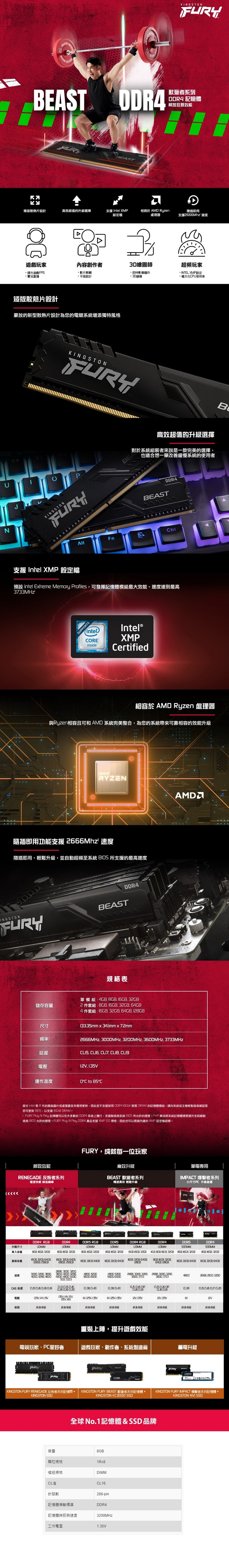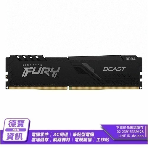 Kingston 金士頓 FURY Beast Black DDR4 3200 8GB 16GB 32GB 桌機記憶體
