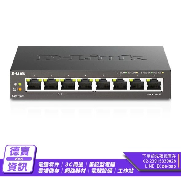 1. 連接埠數量/介面 : 8埠10/100/1000 BASE-T,第1-4埠為PoE,支援IEEE 802.3af/802.3at,PoE總輸出供電量(PoE Budget)為60 W (單埠PoE埠可達30 W max)