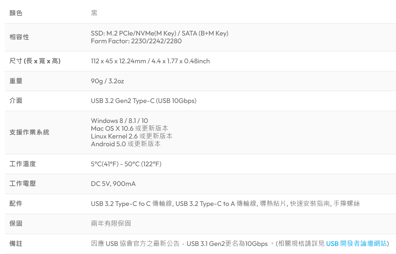 材質 支援硬碟規格 M.2 PCIe/SATA