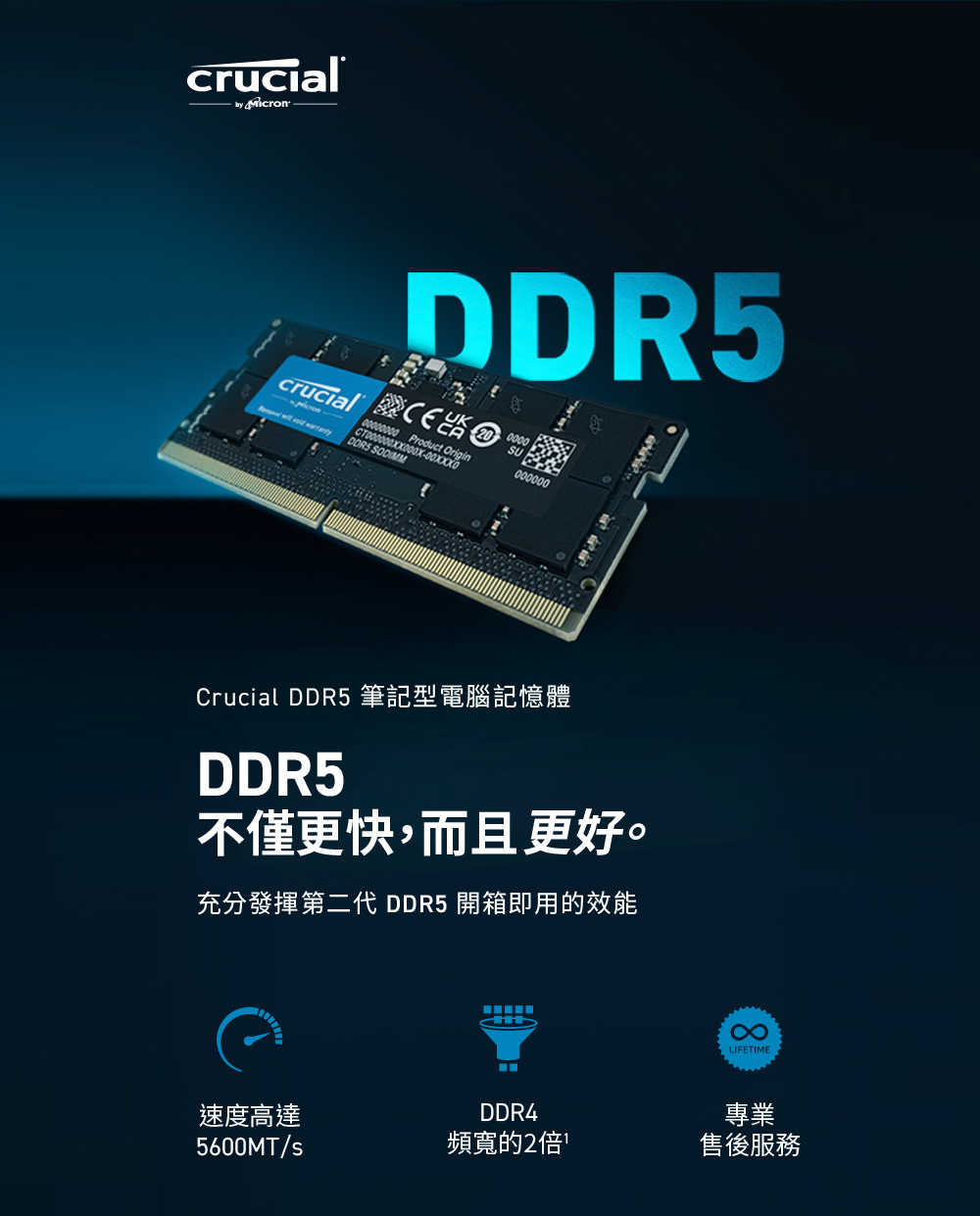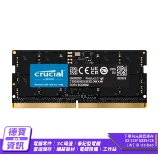 Crucial 美光 DDR5 5600 16GB 筆電記憶體(CT16G56C46S5)