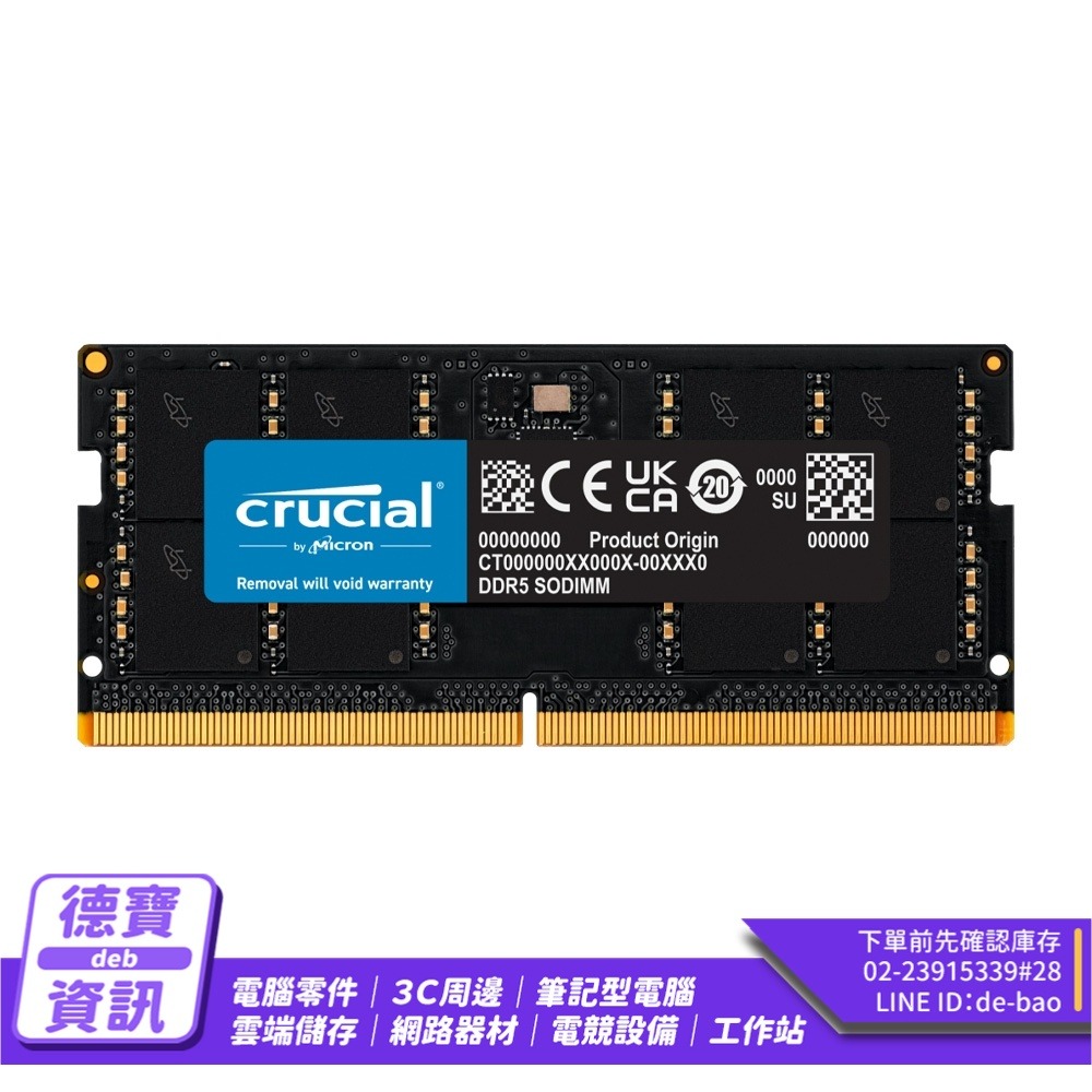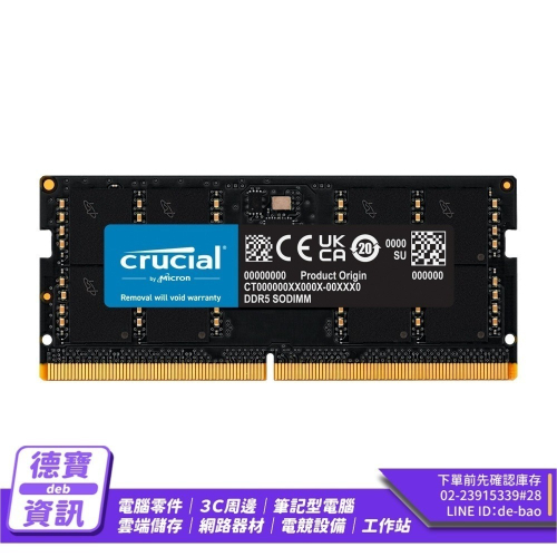 美光Micron Crucial NB-DDR5 5600/ 32G 筆記型RAM 內建PMIC電源管理晶片原生顆