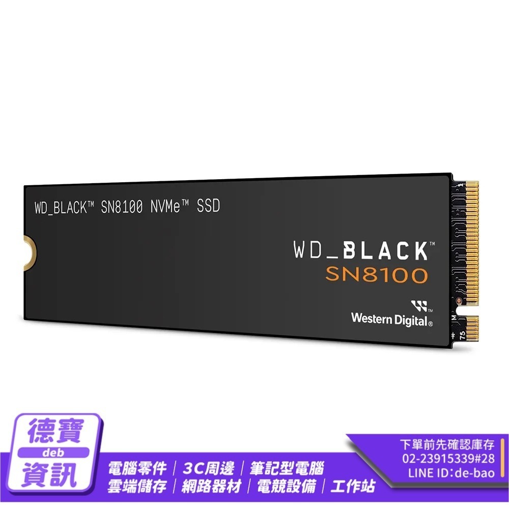 WD 黑標 SN8100 1TB M.2 PCIe 5.0 NVMe SSD固態硬碟WDS100T1X0M-00CMT