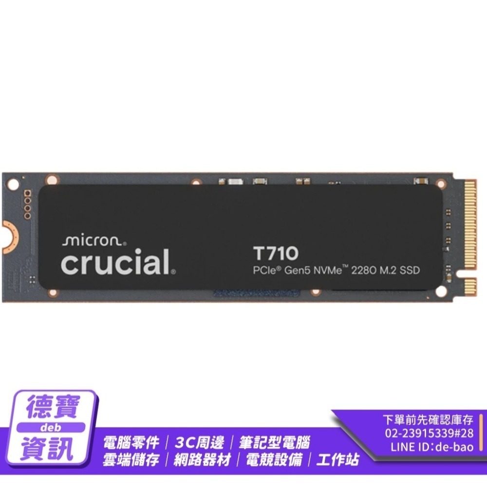 美光Micron Crucial T710 1TB 2TB 4TB PCIe Gen5 M.2 SSD 固態硬碟